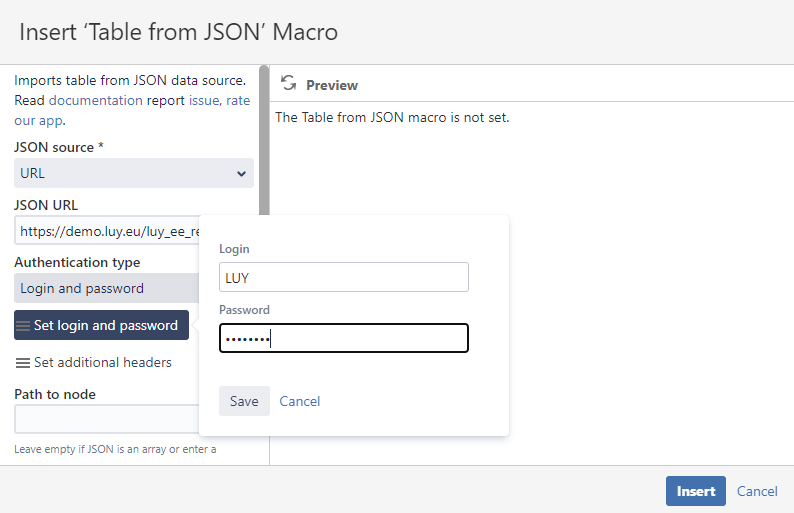 Select the macro „Table from JSON“ in Confluence.