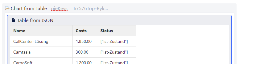 The “Table from JSON” marco retrieves the data from LUY through the REST API and presents it in a table.