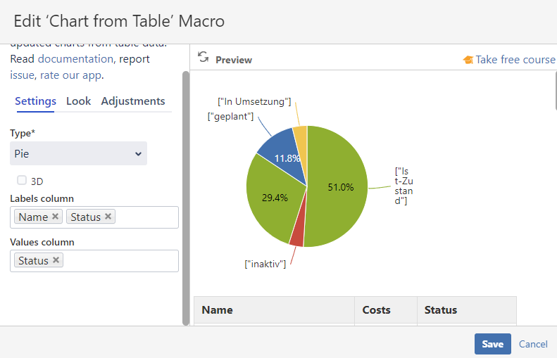 The add-on “Chart from Table” macro for Confluence