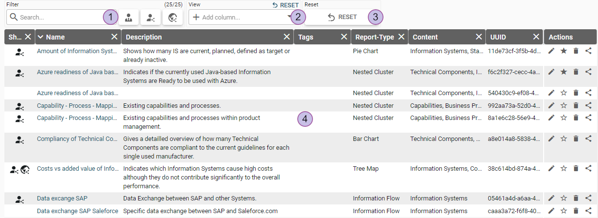 2. Reset button in the right upper corner to just reset the view category (only visible if the view is not the default state)
