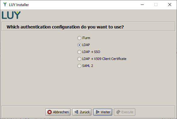 First, you can select the authentication mechanism of LUY. The different authentication methods are described in the linked section.