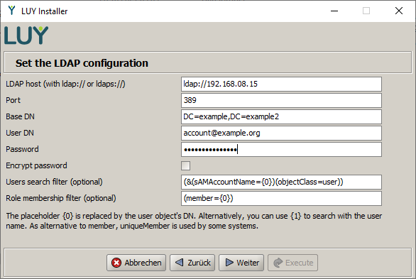 In our example we chose the installation with LDAP/LDAPS. The next step is the configuration of the LDAP/LDAPS connection.