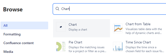 Select the macro „Chart from Table” in Confluence.