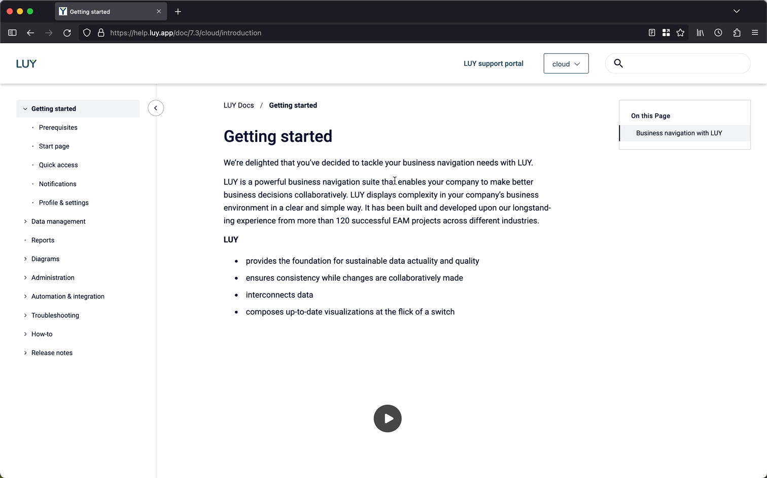 The new help center allows you to easily switch between different versions of LUY, including switching between on-premise and cloud-only information. With that you directly get information matching your version of LUY.