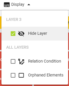 To hide one layer, select the correct layer in the drop-down. Then, go to the "display" menu and activate the checkbox “hide layer”. The legend will signal hidden layers.