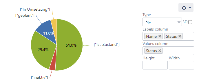 Data from LUY can be easily and conveniently displayed in Confluence via an external shared report in JSON format. This section describes how data is displayed in a table or a chart diagram.