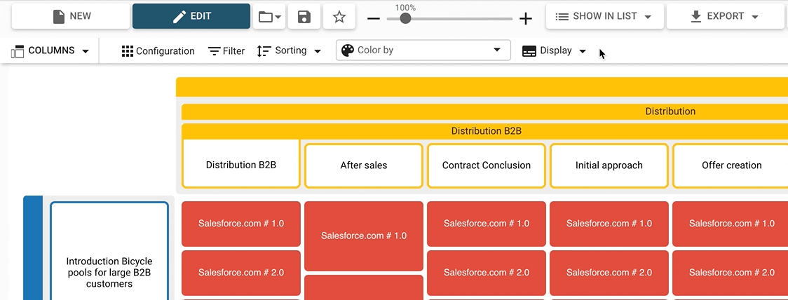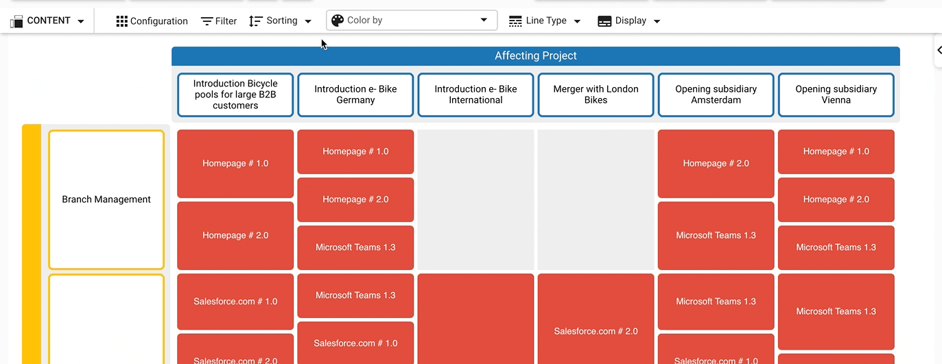 There is a long list of information systems visualized in the diagram, but not all of them are equally important to the viewer. You can choose to sort them by descending business criticality, to view the most important elements on top.