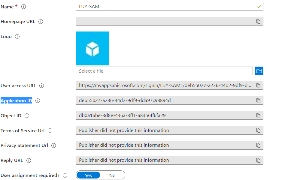 Setup an Enterprise Application for LUY in Entra ID