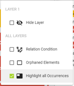 All occurrences of a certain element can be highlighted: