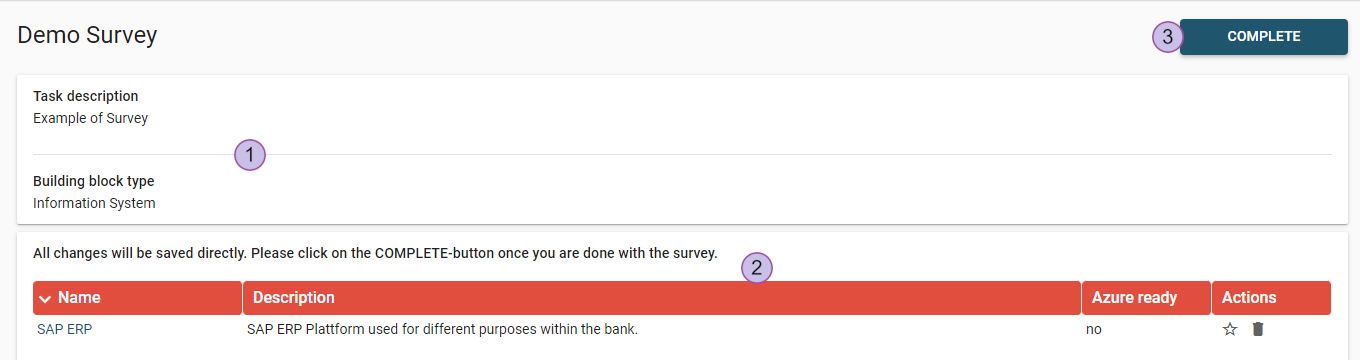 Note: All data changes made in the survey will be directly saved in LUY.Complete survey